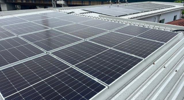 4月末の連休期間中に本社事務所の屋根に太陽光パネルを設置しました。